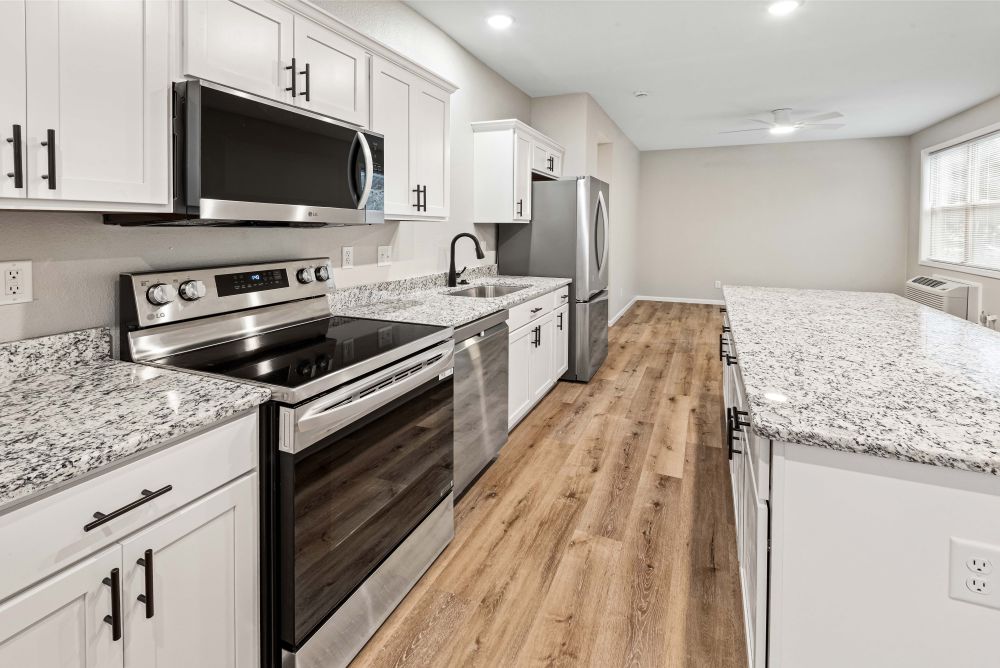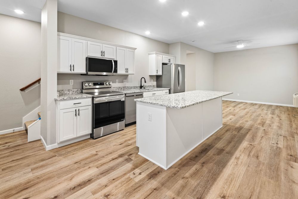 Beautifully renovated 2-bedroom, 2- full bath unit available in a quiet 4-plex in central Manhattan! This home has undergone a complete renovation with modern design throughout, featuring brand new luxury vinyl plank (LVP) flooring and full-size stainless steel appliances. The main level offers an open-concept living room and kitchen with 10ft island, perfect for entertaining or relaxing. Upstairs you’ll find two spacious bedrooms, a full bathroom, and convenient in-unit laundry.