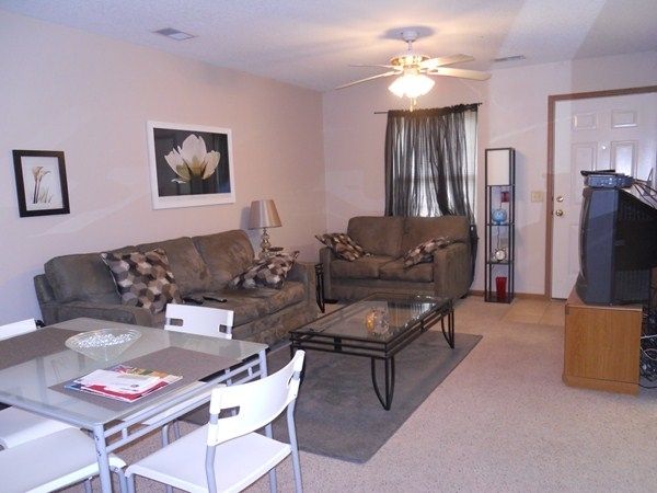 This New Luxury 2 Bedroom, 2 Bath Apartment is located 1 Block east of KSU campus. It is furnished with range, refrigerator, washer, dryer, dishwasher, microwave, central air and heat, and garbage disposal. All electric appliances, so say goodbye to Gas bills!!!!!!!!!!!! NO PETS .Large walking closets. Private parking with security lights all night. Trash, pest control, and lawn care provided. Bicycle friendly with bike racks. Rent: $835/m plus utilities